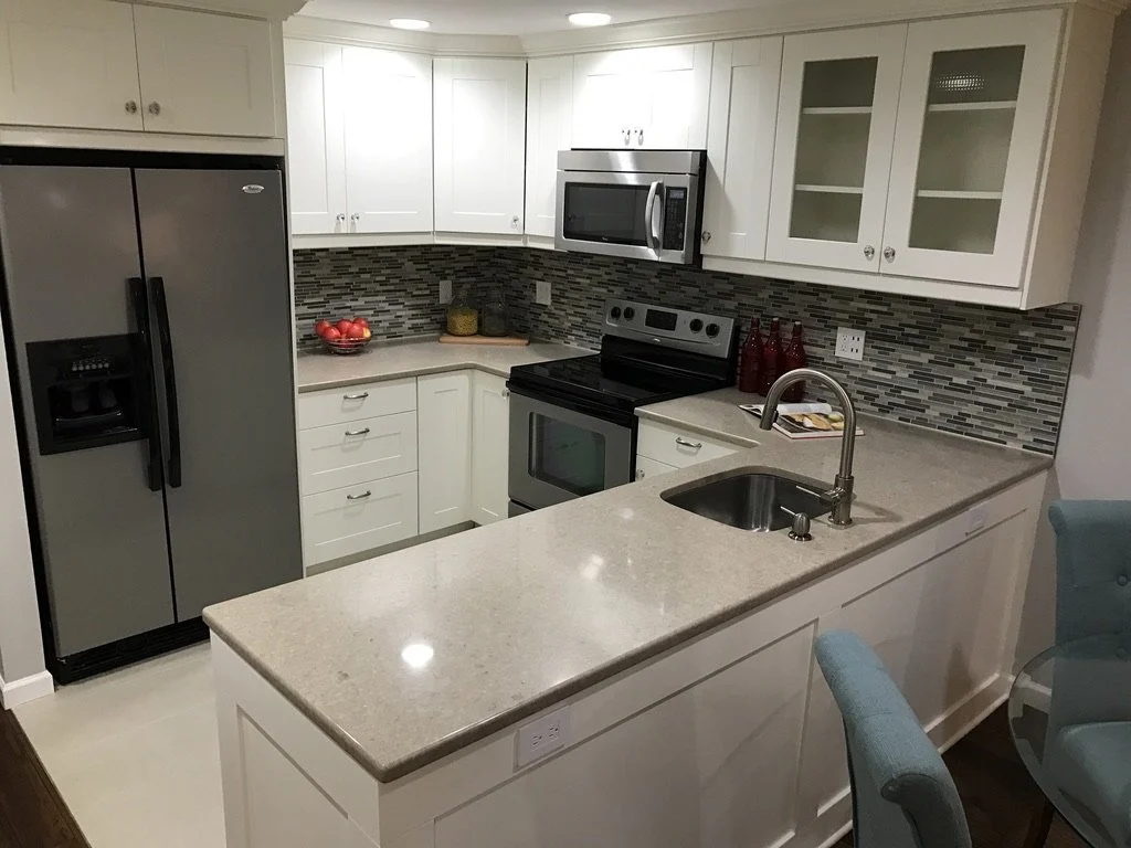 “Brendan just finished up our kitchen project, which included a new tile backsplash, new cabinet doors and hardware, new lighting, shelving, and some miscellaneous woodwork. The whole process was fantastic.”